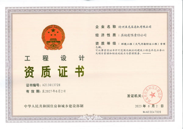 環境工程設計資質證書-