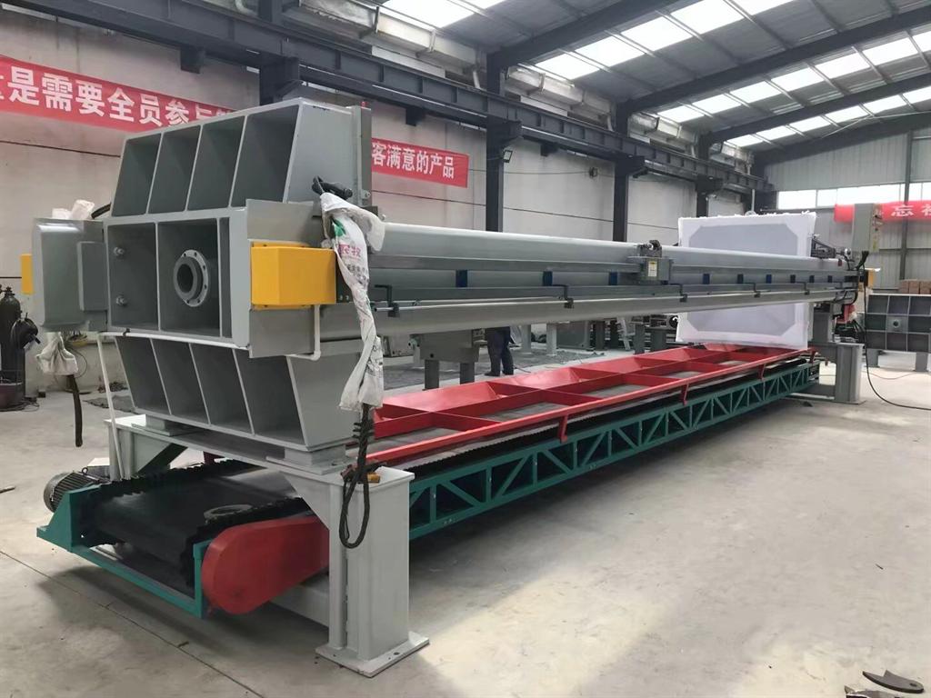 板框壓濾機的濾板和濾框都由壓緊裝置壓緊,同時在濾板和濾框的部位設有把手,用于支撐整個濾室結構。板框壓濾機的濾板和濾框之間所安裝的濾布,除了承擔過濾的工作之外,還能起到密封墊片的作用。