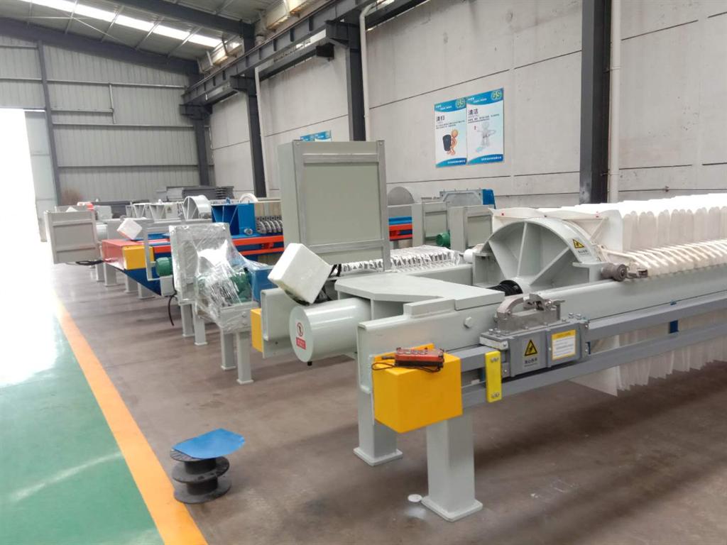 廂式壓濾機工作原理板框式的濾室有一塊平板濾板和一塊中空的濾框組成,濾布固定在板框上的,這是早期主要壓濾機形式,廂式壓濾機的主要優點是_換濾布方便,缺點是效率低、過濾效果不好、濾板容易壞;廂式壓濾機的濾室是由相鄰兩塊凹陷的濾板構成。
