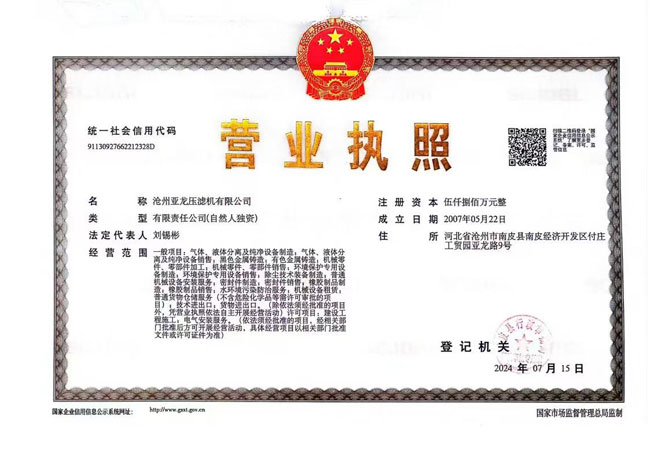 公司名稱:滄州亞龍壓濾機有限公司 公司地址:河北省南皮縣付莊工業開發區 電話:0317-8189922 傳真:0317-8189923 手機:13831723798 網址: